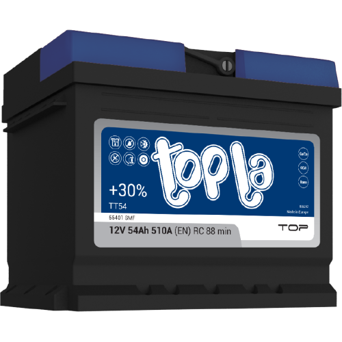 TOPLA TOP akumulatori objedinjuju najnovije inovacije u Ca/Ca tehnologiji proizvodnje, što obezbe uje impresivne startne sposobnosti i superioran izvor napajanja za vozila najnovije generacija sa visokim zahtevima po pitanju elektricne energije. SMF zatvoreni sistem kucišta obezbe uje sigurnost prilikom prevrtanja i sprecava izlivanje elektrolita što je doprinelo da kod ove vrste akumulatora nije potrebno nikako održavanje.